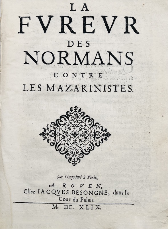 ![[Mazarinade]. La Fureur des Normans contre les Mazarinistes.](https://bonnefoi-livres-anciens.com/wp-content/uploads/2025/09/43749_1.jpg)