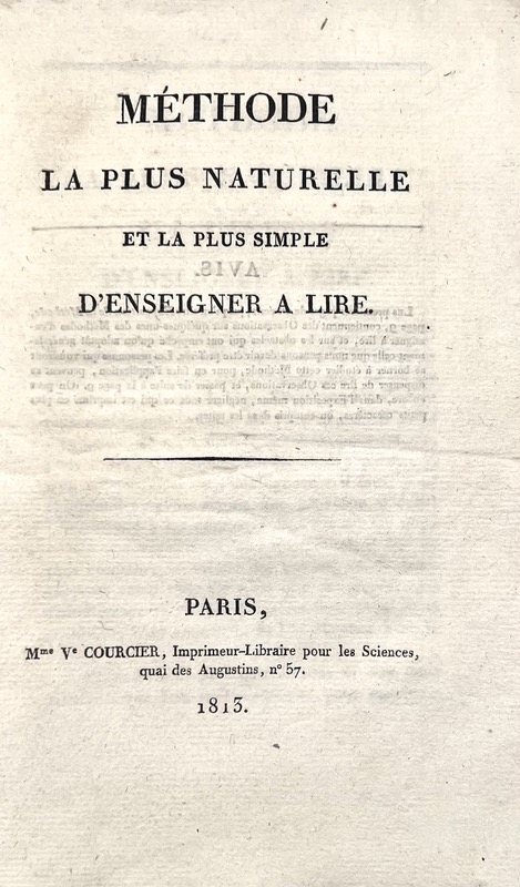 Édition originale de cette méthode de lecture élaborée par le mathématicien Nicolas-Maurice Chompré qui repose sur un jeu de 152 cartes combinant figures représentatives des sons et types des sons. « La méthode des cartes élémentaires ne consiste presque que dans l’observation de deux règles : la première, sur la manière de prononcer isolément chacune des 19 consonnes qui font partie des 36 sons (31 sons simples et 5 sons composés) ; la seconde sur la suppression presque entière de ce qu’on appelle épeler. » Contient 38 planches de 4 cartes chacune accompagnées d’un tableau des cartes pour la lecture. Nicolas-Maurice Chompré (1750-1825), diplomate, auteur d’ouvrages de physique et de mathématiques, fut directeur, entre 1777 et 1786, de la Correspondance générale à la Division des mines et de l’agriculture du Contrôleur général des Finances Bertin. Manque de papier au dos de la couverture. Quérard, II, 196.