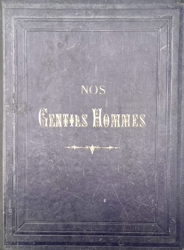 Suite complète. Grande vignette au titre et 19 planches lithographiées coloriées de l’illustrateur Cham (Amédée Charles Henri, Vicomte de Noé (1818-1879). Maitre et valet, bambocheur, cavalier et chasseur : Fusil de luxe, cabriolet aérodynamique, déguisement de jockey, gages des domestiques, perte au jeu, créancier floué, joie de l’escrime, salon de coiffure, tir aux pigeons, mariage de raison… Dos restauré, coins usés, reliure légèrement frottée.