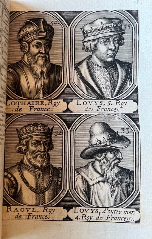 Au tome I, 48 portraits gravés sur 31 planches ajoutées au moment de la reliure (Pharamond, Lothaire, Raoul, Philippe le Hardi, etc, jusqu’à Charles VI). Édition la plus complète d’Ancien Régime, qui regroupe le texte définitif revu par le Président Hénault et publié dans l’édition illustrée de 1768 (distribué dans les 3 premiers volumes), ainsi que la continuation due à Fantin-Desodoards (deux derniers volumes). Cette série forme la base des rééditions de 1800, 1805 et 1820. Bel exemplaire. Défaut d’impression page 69.