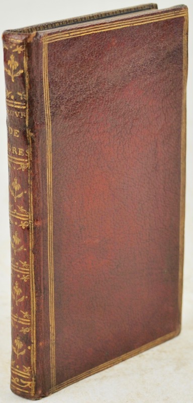 In-16 de (4)-158 pp., maroquin rouge, dos lisse orné, triple filet doré sur les plats, tranches dorées (reliure de l’époque).