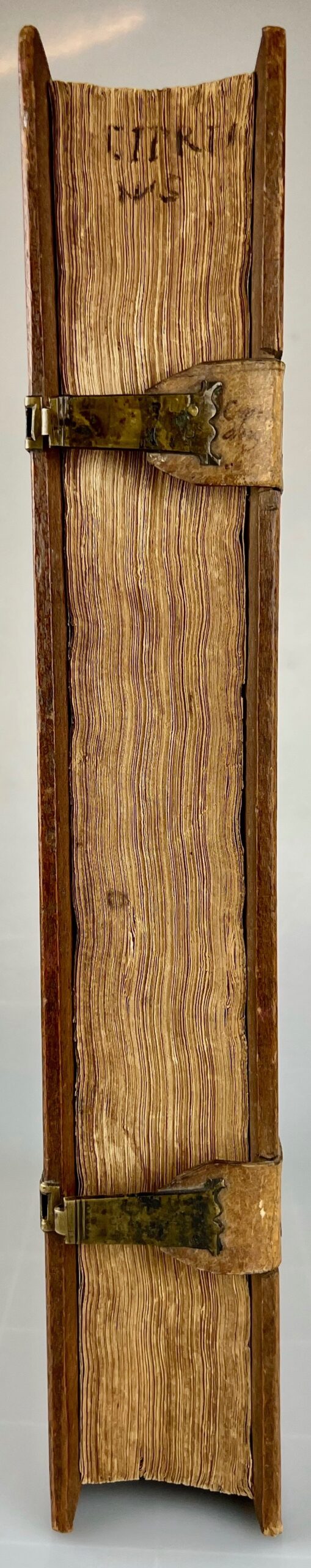 In-folio (340 x 215 mm) de (24)-515-(1) pp. (32) pp. (signatures a-z, A-Y6-Z8, Aa8), index, demi-vélin estampé à froid sur ais de bois orné de rinceaux et figures saintes, dos à trois nerfs, titre manuscrit sur la gouttière, deux fermoirs (reliure de l’époque).