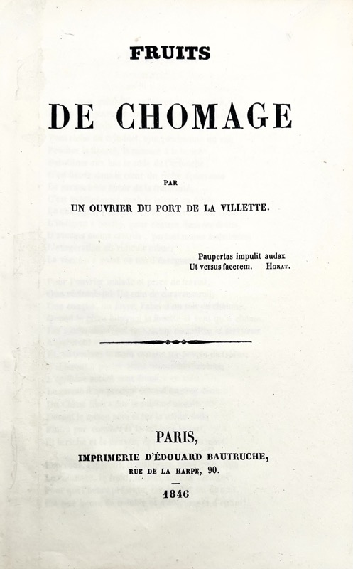 ![[Paris. Villette. Poésie ouvrière. 1846]. Fruits de chômage, par un ouvrier du port de la Villette.](https://bonnefoi-livres-anciens.com/wp-content/uploads/2025/10/43724_1.jpg)