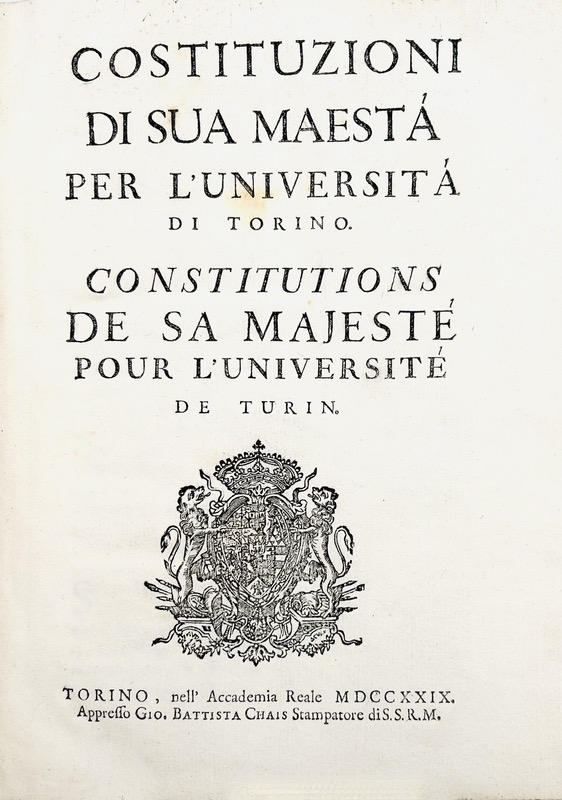 [Piémont - Sardaigne]. Costituzioni di Sua Maestà per l'Università di Torino. Constitutions de Sa Majesté pour l'Université de Turin.