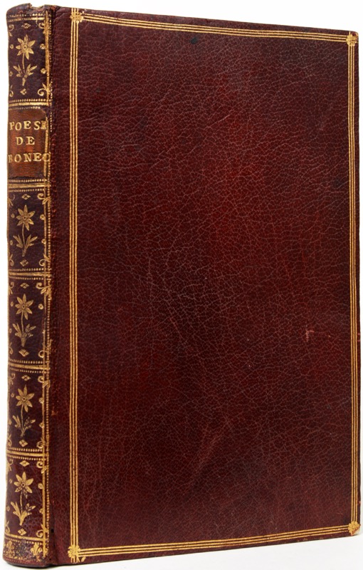 In-12 de (16)-188-(4) pp., table et errata, maroquin rouge, dos lisse orné, pièce de titre en maroquin fauve, triple filet doré d’encadrement sur les plats, tranches dorées (reliure de l’époque).