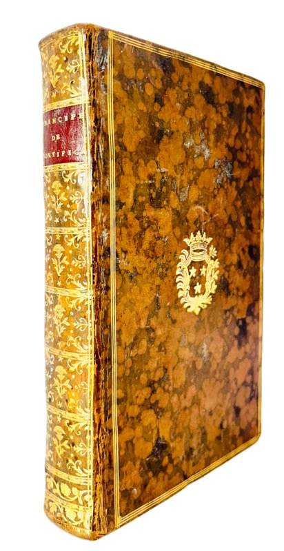 In-8 de (4)-IV-302 pp. et 7 planches dépliantes, veau marbré, dos lisse orné, pièce de titre en maroquin rouge, armes dorées sur les plats, tranches rouges (reliure de l’époque).