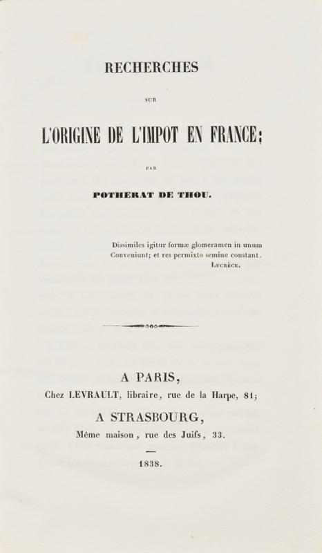 Paris et Strasbourg, Levrault, 1838.