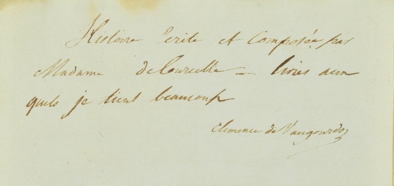 Réunion de deux textes inédits et manuscrits, roman d’éducation et relation d’un voyage à Paris, attribués selon une note placée en tête d’ouvrage à Madame de Courcelle par la destinataire du recueil Clémence de Vaugourd (ou Vaugouard – toutes deux inconnues par ailleurs) qui ajoute : Histoire écrite et composée par Mme de Coucelle. Livres auxquels je tiens beaucoup. Clémence de Vaugourd. 1. L’Histoire comme il y en a tant probablement rédigée vers 1820 s’inscrit dans la tradition des romans édifiants des XVIIe et XVIIIe siècles voués à transmettre les valeurs chrétiennes à leurs lecteurs par la fiction narrative en prose : Victorine, poursuivie dans sa vie de jeune femme par un drame provoqué à l’âge de douze ans “par son bavardage“, cherche à se corriger afin de séduire les parents de son amant Monsieur de B… qui la jugent “coquette“ et la rejettent. « Je m’affermis dans mon projet de me corriger de tous mes défauts (…) – comme tu le fais tu dois chercher à te perfectionner afin de convaincre ses parents de leur injustice à ton égard ». La lutte vertueuse de l’héroïne contre sa vanité et son orgueil sera récompensée par son mariage qui parachève son éducation sentimentale et morale. 2. Un de mes voyages à Paris est un tableau inédit de la capitale sous la Restauration rédigé vers 1822 alors que les Bains de Saint-Sauveur, rue Saint-Denis « sont tout nouvellement établis » (p. 34) et que Jacques-Louis David peint dans son atelier du Louvre une copie du Sacre de Napoléon (p. 61) : « ce même jeune homme nous proposa pour nous dédommager de venir le lendemain voir le fameux tableau du couronnement fait par David ; nous acceptâmes de grand coeur car il était difficile de se procurer ce plaisir, David était occupé d’en faire une copie. Il fallait pour le voir entrer dans son atelier. Ce jeune homme le connaissait, et par ce moyen, nous fûmes à même d’examiner à notre aise et en détail cet étonnant tableau » ; en 1822 assisté de Georges Rouget, Jacques-Louis David achevait en effet une copie du Sacre commencée en 1808. C’est pour répondre agréablement “à une bonne amie“ que Madame de Courcelle entreprend la relation de son voyage à Paris où elle est venue visiter sa fille en pension (on assiste d’abord à la distribution des prix). Installées près de la Porte Saint-Martin, elles longent les boulevards et leurs boutiques, se rendent au Palais Royal (« tu ne connais pas ce lieu enchanteur, je vais t’en faire la description ») découvrent les Tuileries et le Jardin de Tivoli (« tous ces plaisirs se terminent par un très beau feu d’artifice »), admirent le Panorama de Tilsitt ; rive gauche, elles assistent à l’Odéon à la représentation d’un Opéra bouffe, visitent la galerie de tableaux du Sénat et le Jardin du Luxembourg, tentent d’assister à une séance à l’Assemblée nationale. Le soir, mère et fille prolongent le plaisir et l’instruction par la lecture du « joli roman de Caroline de Lichtfield (ou Mémoires d’une famille prussienne, par Mme la Bnne Isabelle de Montolieu Ndlr) si l’on en faisait que comme celui-là, on pourrait facilement en laisser lire aux jeunes personnes », se rendent “au Français” pour assister à une représentation de Marivaux, Le Jeu de l’amour et du hasard, mais aussi au vaudeville tandis que s’approche l’heure douloureuse du retour à Provins où la famille réside : « Il faut qu’une mère sensible soit bien pénétré de l’importance de l’éducation, pour se déterminer à se séparer aussi longtemps d’un enfant chéri ». Relation inédite, précieuse pour ses nombreuses descriptions et scènes de la vie parisienne sous la Restauration.