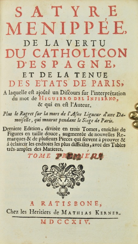Jolie édition copiée sur celle de 1709. Frontispice et 6 figures dont 2 pliées en trois dont la Procession de la Ligue. Bon exemplaire malgré une mouillure marginale en tête du tome II.