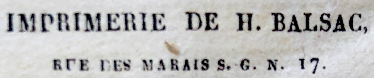 Deuxième édition imprimée par Honoré de Balzac avec la mention au verso du faux-titre : Imprimerie de H. Balsac (sic), rue des Marais S.G.N. 17. L’édition originale parut la même année. Recueil de la vicomtesse de Chamilly, pseudonyme collectif de François Loève-Veimars (1801-1854), Emile Vanderburch (1794-1862) et Auguste Romieu (1800-1855). L’oraison funèbre ; Le prêtre marié ; La pièce de circonstance ; Le philanthrope ; La quête ; La morale de la fable ; Le Prix de vertu ; Le tableau du sacre ; Le revers de la médaille ; Le dix-huit brumaire. 2 lithographies hors-texte coloriées d’Henry Monnier dont un titre-frontispice. Provenance : baron Marcellin Jard-Panvillier (1789-1852), Pair de France (super-libris en pied « M. J. Panvilliers). Bel exemplaire, quelques rousseurs. Quérard, Supercheries, I, 691 ; Vicaire, II, 173 ; Hanotaux et Vicaire, 148 ; Champfleury, Henry Monnier sa vie, son oeuvre, p. 360.