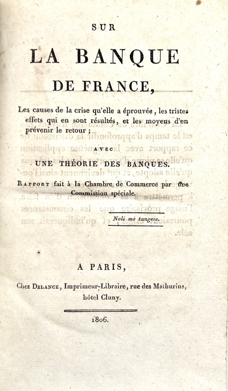 ![[DUPONT DE NEMOURS (Pierre-Samuel)]. Sur la Banque de France, les causes de la crise qu'elle a éprouvée avec une théorie des banques. Rapport fait à la Chambre de commerce par une commission spéciale.](https://bonnefoi-livres-anciens.com/wp-content/uploads/2025/08/43238_1.jpg)