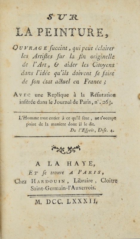 ![[Paul (critique d'art)]. Sur la peinture, ouvrage succinct, qui peut éclairer les artistes sur la fin originelle de l'art, & aider les citoyens dans l'idée qu'ils doivent se faire de son état actuel en France ; avec une replique à la réfutation insérée dans le Journal de Paris, n°263. – Image 2](https://bonnefoi-livres-anciens.com/wp-content/uploads/2025/08/42587_2.jpg)