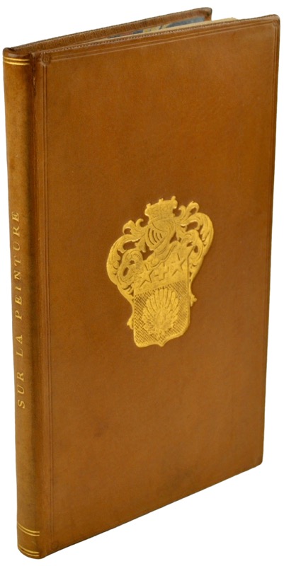 Édition originale attribuée au critique d’art Paul (Barbier IV, 604). « Un pamphlétaire, dont l’anonymat dissimulerait la figure de Paul, confirme cette figure de l’artiste précepteur du bon goût, de la vertu civique. Le propos maintient une apparente fidélité monarchique dans son éloge de Louis XIV, protecteur des Beaux-Arts, en la personne de Le Brun, de Le Sueur et de Puget car, à cette époque, « nous eûmes des grands hommes, parce qu’un grand homme savait les distinguer, les reconnaître » (Sur la peinture, ouvrage succinct, qui peut éclairer les artistes sur la fin originelle de l’art, 1782). Ces accents très voltairiens savent se conjuguer avec une lecture plus rousseauiste de la production artistique du règne de Louis XV, marquée par la domination de peintres décadents comme de Troys, Restout, Coypel et surtout dans « les mixtives ingénieuses et perfides de Boucher ». Cette fois, le constat est plus grave, puisque la vue de ces toiles « fait que le civisme vous arrache le pinceau des mains, que l’amour de l’art vous déchire le cœur » (ibid). Dans ce texte nourri des lectures les plus variées (Algarotti, Shaftesbury, Webb), l’art se réduit à une propédeutique chargée de propager un idéal civique, où la quête du beau se réduit à la recherche des moyens de l’élévation des membres du corps social. Selon une formule pour le moins troublante, l’art est « plus une moralité qu’une œuvre matérielle ». Il se pense d’abord par sa fonction, par ses fins, plus que par sa matérialité. Cela explique que l’auteur puisse opposer la fonction de l’artisan, qui doit être « le physique de l’Etat », à celle de l’artiste qui en est « la spiritualité ». Un maître en peinture ne doit-il pas « former le cœur, élever l’âme et le génie de ceux qui se rangent auprès d’eux, faire pour l’art des champions illustres pour la patrie des citoyens » ? Seuls de tels « artistes citoyens » (ibid) sauront mettre un terme dans « le désordre, l’insouciance qui abâtardissent les talents au sein des arts » pour au contraire recouvrer « l’antique patriotisme » (ibid). » (Édouard Tillet). Bel exemplaire aux armes de Pavé de Vandeuvre. Quelques petites rousseurs. Tillet Édouard. Quand même le peintre se devait d’être un citoyen : Tentative d’analyse des discours sur les arts picturaux au siècle des lumières In : Sujet et citoyen : Actes du Colloque de Lyon (Septembre 2003). Aix-en-Provence : Presses universitaires d’Aix-Marseille, 2004.