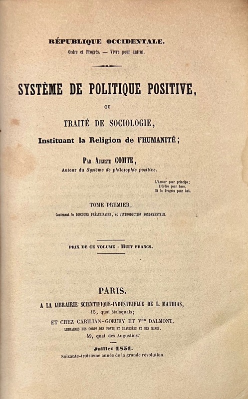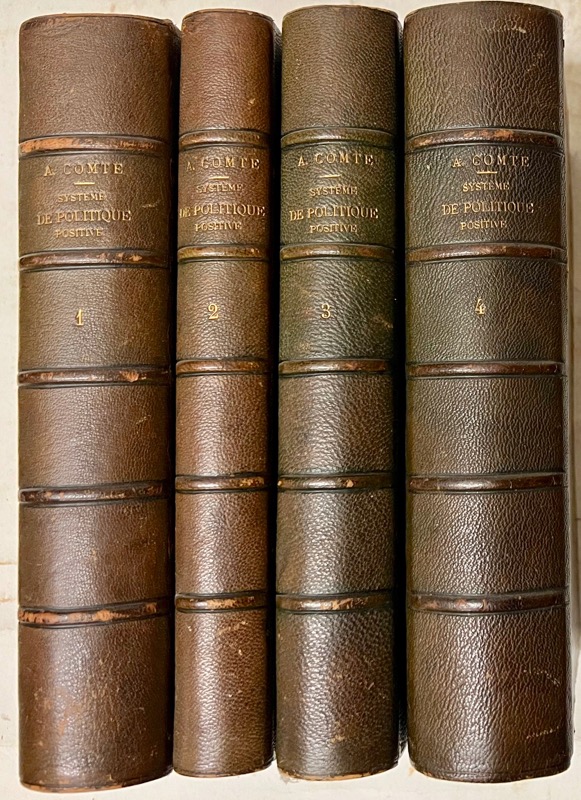 Édition originale rare. L’appendice au quatrième tome forme un cinquième tome donnant les écrits de l’auteur pendant sa période saint-simonienne. La Table analytique dressée par H. d’Olier, publiée en 1881, a été reliée à la fin du 4e volume. Bon exemplaire. Des rousseurs.