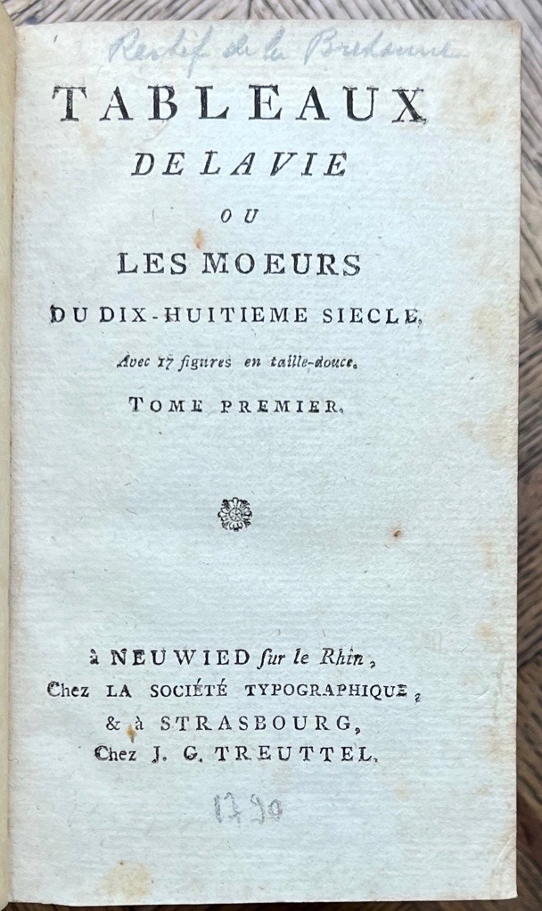 ![[RESTIF DE LA BRETONNE (Nicolas-Edme)]. Tableaux de la vie ou les Moeurs du dix-huitième siècle. – Image 2](https://bonnefoi-livres-anciens.com/wp-content/uploads/2025/08/40619_2.jpg)