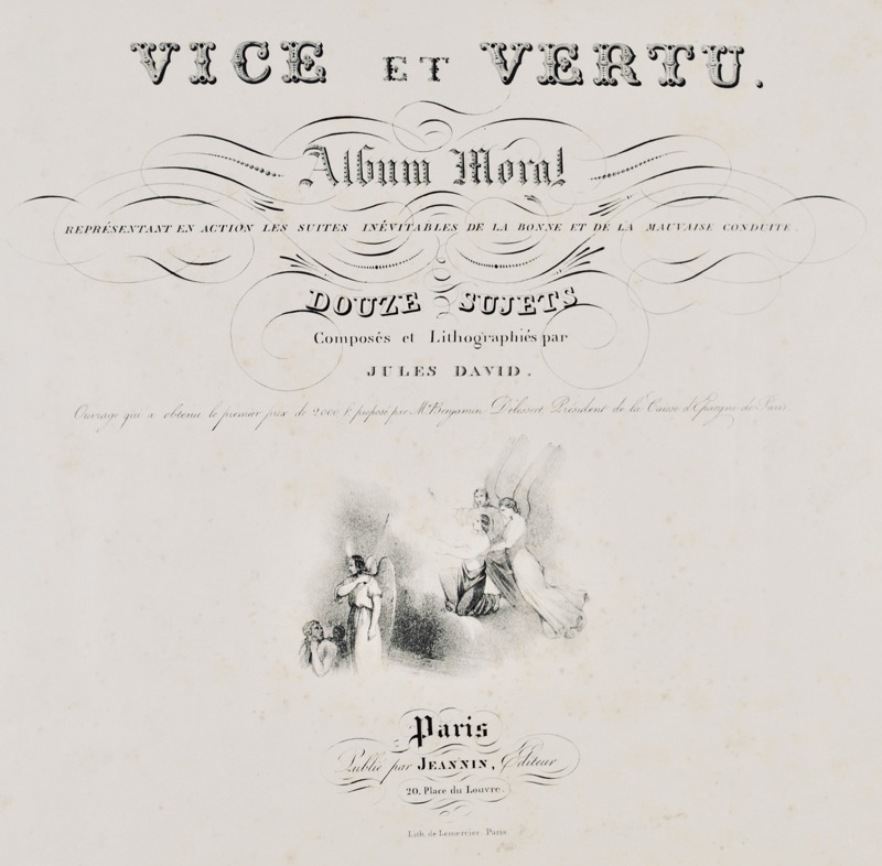 Vice et Vertu. Album moral représentant en action les suites inévitables de la bonne et de la mauvaise conduite. Douze sujets composés et lithographiés par Jules David.