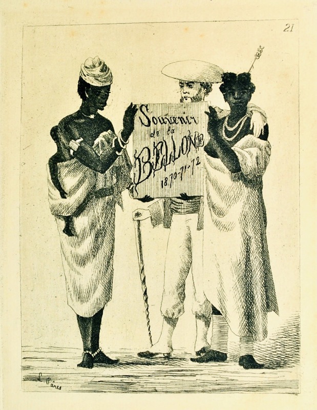 Suite complète très rare de 16 eaux fortes à sujets maritimes, signées dans la planche du monogramme LP pour Léon Pâris, titrées et légendées : (1) La Terre par le bossoir, (2) Changer les hamacs, (3) Piquez Midi! (4) Les Sacs, (5) La Meche, (6) I. Le Branlebas, (7) II. Le Déjeuner, (8) III. Le Lavage, (9) IV. L’Inspection, (10) V. L’Exercice, (11) VI. Le Dîner, (12) VII. La Permission, (13) VIII. L’Arrivée, (14) IX. Dans les haubans, (15) La Prière, (16) [sans légende]. Collation conforme à Polak (7347) dont les planches 6-14 sont chiffrées romains I-IX. Reliée avec : [Souvenir de la Bellone, 1870-71-72] suite de 18 eaux fortes numérotée 1-22 (les planches 11, 13, 16, 17 manquent) inconnue de Polak, signées dans la planche L. Pâris, titrées et légendées : 1. Promenade au Rio Bingo St Paul de Loanda 1870, 2. Tisserand à Dakar, 3. Chasse au Cap Lopez, 4. Roi Kringer (Gaboon), 5. Torre de Belem (Lisboa), 6. Baobab – Dakar, 7. Sénégalais, 8. Jeunes Filles de Dakar 9. Femmes de Dakar 10. Village noir à Dakar, 12. Déjeuner à Maldonado (Uruguay), 14. Halte à un rancho près Maldonado (Uruguay), 15. Roi Denis (Gabon), 18. Village Gabonnais, 19. Marché à Gorée 20. Carré de la Bellone, 21. Souvenir de la Bellone 1870-71-72, 22. Un Officier de quart. 2 autres planches signées du même artiste sont jointes qui n’appartiennent pas aux suites précédentes, libellées ainsi : Gouvernement de Gorée L. Pâris ; 187. Types de Gabonnais (Sénégal) L. Pâris. L. Pâris del. et sculp. A Cadart Edit. Imp. Rue des Mathurins, 58 Paris. Rare et précieux recueil maritime illustré par le dessinateur et aquafortiste Léon Paris qui réunit une suite complète sur la vie à bord d’un vaisseau et le voyage sur l’Atlantique du Bellone depuis le Sénégal et Gorée jusqu’à l’Uruguay. Polak, 7347.