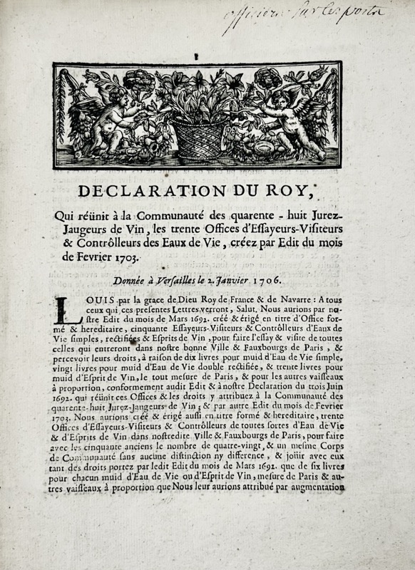 Enregistré au Parlement, à la Chambre des Comptes et à la Cour des Aides les 14, 25 janvier et 20 février 1706.