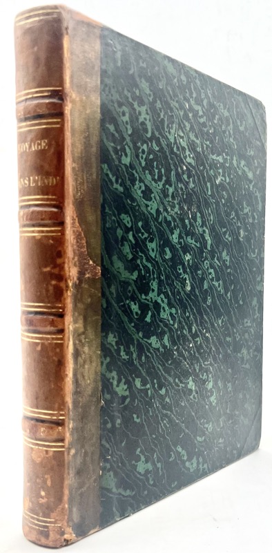 Édition originale de la traduction française . Illustré de deux cartes dépliantes gravées Bouclet : Cartes des routes de Thomas Howel de Bassora à Constantinople et du colonel Capper de Latichea à Bassora par Alep et à travers le Grand Désert ; Égypte avec les routes tant anciennes que modernes de la mer Rouge à la mer Méditerranée par le colonel James Capper. Thomas Howel, médecin au service de la Compagnie des Indes, retrace son voyage de Madras à Constantinople, à travers la Perse et l’Arabie. Il donne d’intéressants détails sur l’Arménie, l’Anatolie, le Kurdistan ainsi que sur la ville de Constantinople. Son récit parut originellement en anglais en 1789. Le traducteur, Théophile Mandar (1759-1822) a rédigé un copieux appendice où il décrit notamment Maduré, la côte des Malabars et de Coromandel, Cochin, Bagdad, Bassora, Babylone. Le voyage de James Capper, colonel au service de la Compagnie des Indes, se déroula de septembre 1778 à février 1779, et parut d’abord en anglais en 1782. On trouve in-fine, en appendice l’Itinéraire de l’Arabie déserte ou lettres sur un voyage de Bassora à Alep par le grand et le petit désert publié en 1750 par MM Plaisted et Eliot, capitaines au service de la compagnie des Indes de Londres. Chadenat, n°5072 ; Gay, 2066. Infimes rousseurs et trace de mouillure claire marginale sur la permière carte.