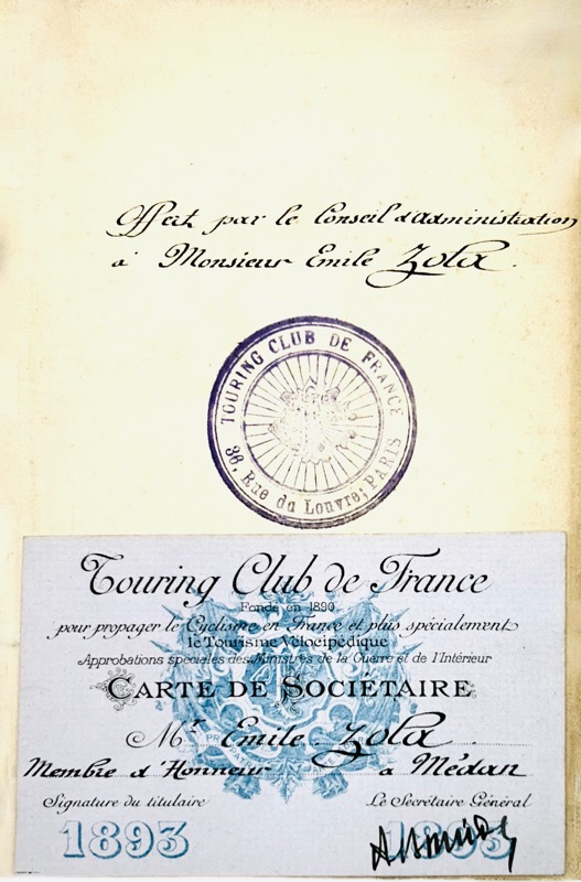 Exemplaire de l’Annuaire du Touring Club de France offert par le Conseil d’administration à Monsieur Émile Zola. Joint la carte de Sociétaire du Touring Club de France d’Émile Zola Membre d’honneur à Médan.